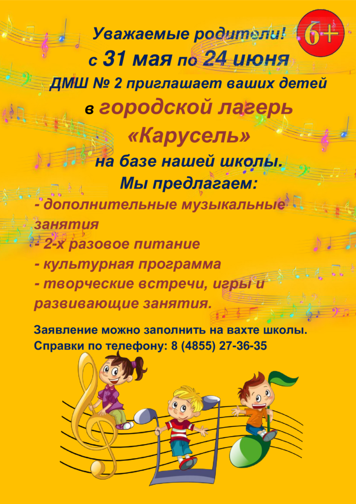 ДМШ №2 приглашает ваших детей в городской лагерь «Карусель»